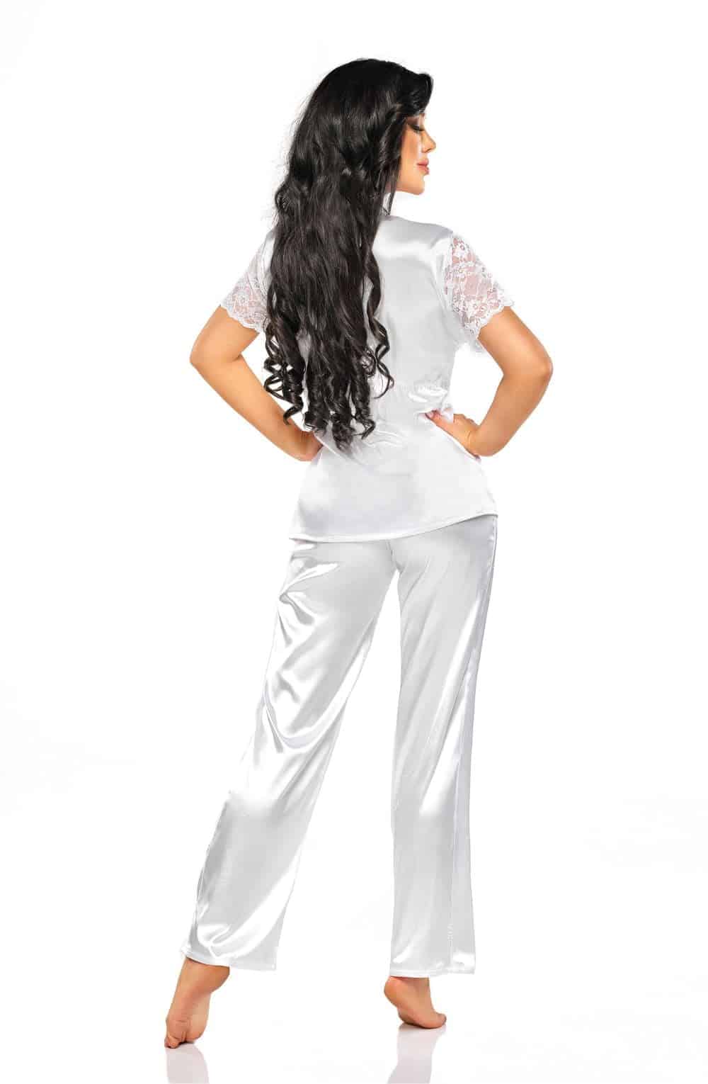 The Missy Set in white is a luxurious pyjama set that combines elegance and comfort, perfect for any woman. Here’s what makes this set special: Key Features The luxurious delicate, shiny fabric provides incredible comfort and a sophisticated look. Subtle lace details on the sleeves and waist add charm and sensuality. A deep V-neckline highlights the bust, enhancing femininity. The elastic waistband ensures a perfect fit and maximum comfort. Long, loose pants offer full freedom of movement and comfort throughout the night. The Missy Set in white makes an excellent gift, presented in elegant packaging with a product photo. Indulge in a touch of luxury with the Missy Set!