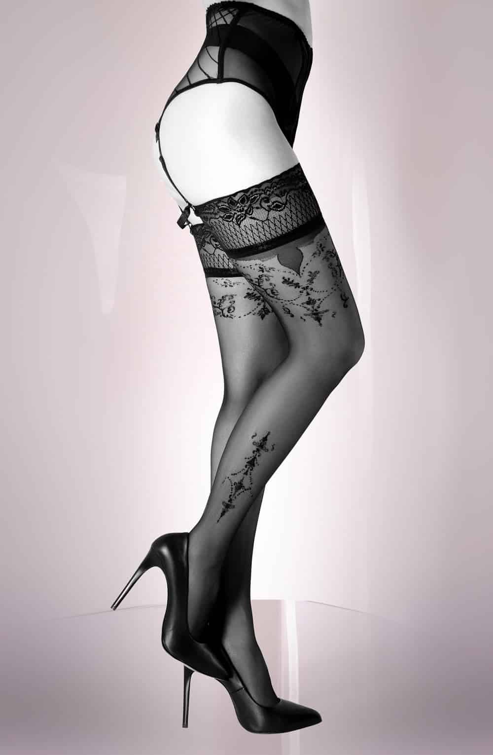 A Beautiful Sheer Hold-Ups with Fabulous Bordeaux Detailing – a mesmerising blend of elegance and allure! These exquisite hold-ups feature sheer black fabric adorned with stunning Bordeaux detailing around the thigh and calf, perfectly complemented by a matching lace top. Each detail exudes sophistication and charm, creating an enchanting look that’s perfect for any occasion. Packaged in our sleek black Secret branding, they’re ready to add a touch of glamour to your wardrobe!