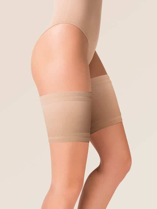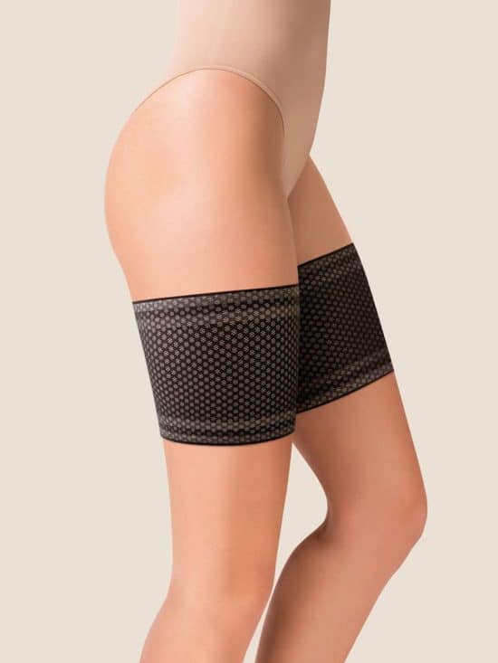 Lovely lace thigh bands made from the highest quality elastic yarns. Perfectly designed to be self supporting and prevent chafing. A must have accessory for those long hot summer days. These thigh bands arrive in Gabriella packaging. PLEASE NOTE: This product cannot be sold or distributed to the United States of AmericaÂ