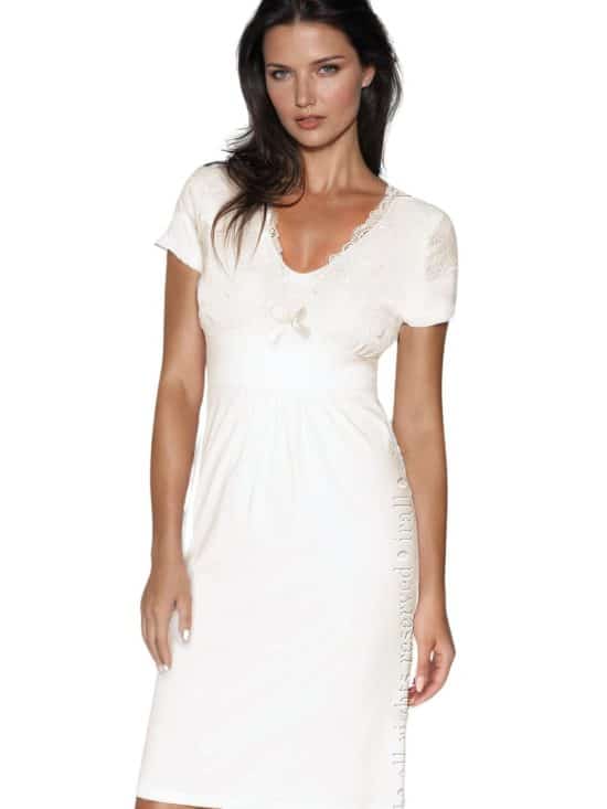 Elegant nightdress made from super soft elastic and viscose fabric. The front sleeves and under bust are decorated with delicate lace which gives the model a unique charm. In the line under the bust an elastic band is sewn in to support the breasts. Cameron is a knee length design with a height of 164 cm. The product is packed in an elegant Irall box. There are several colours available please see related products for more information.