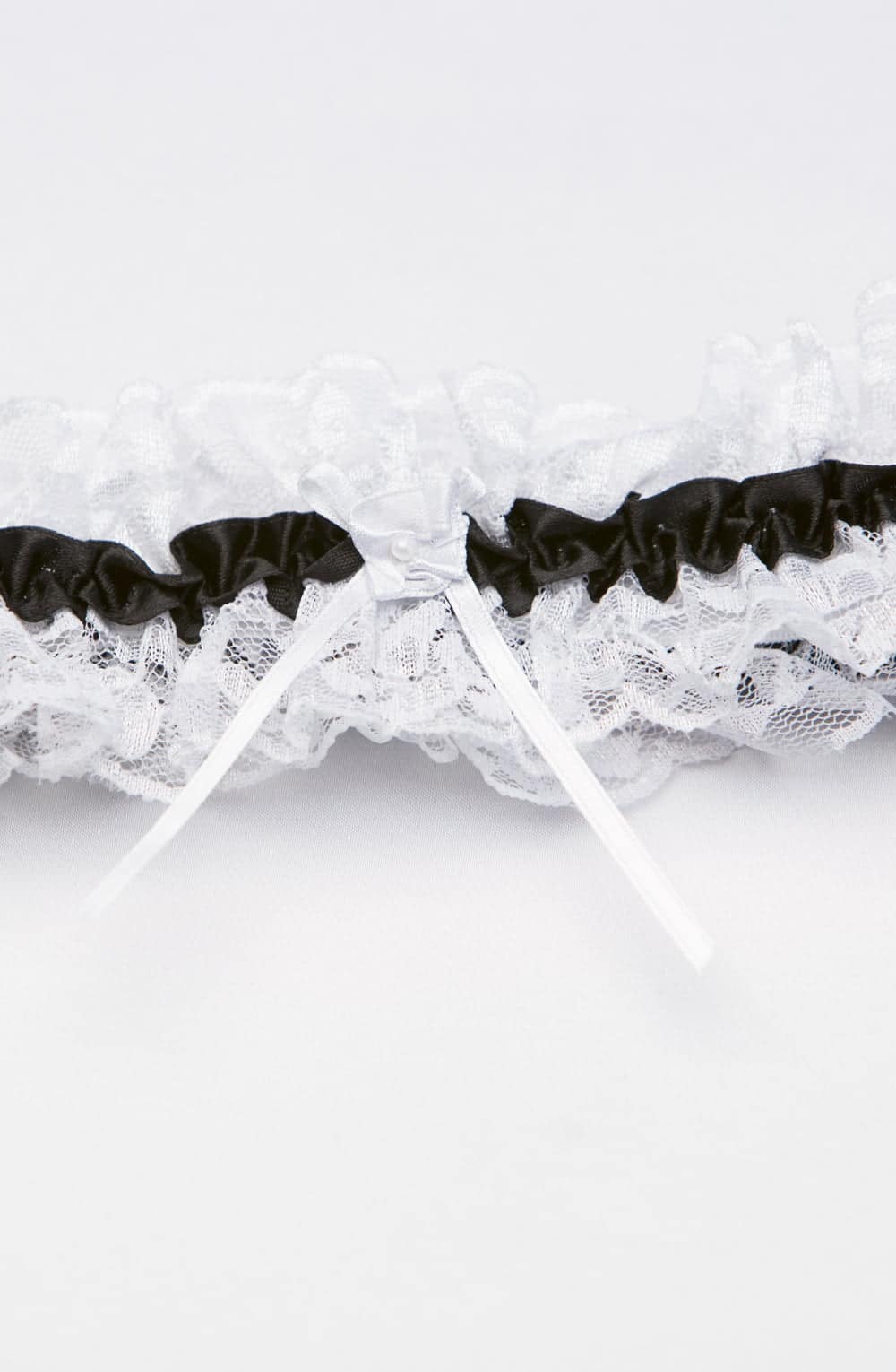 Pretty lacy leg garter with soft satin trim and white lace on top and bottom.