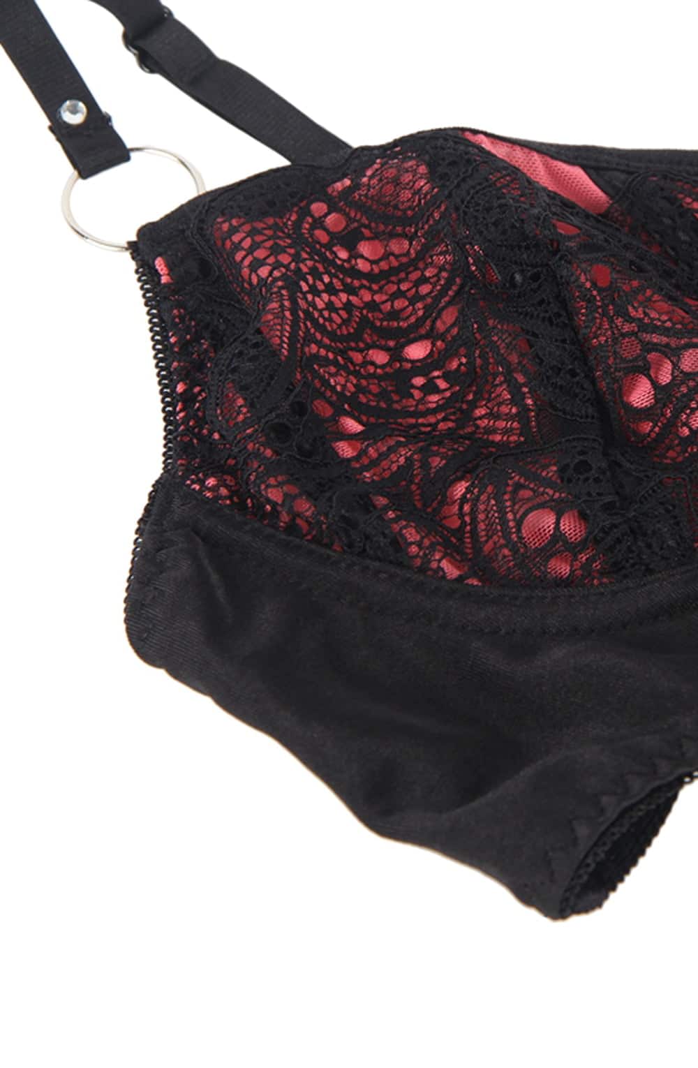 Beautiful two piece bra set.  The bra is underwired, adjustable and decorated with black lace across the cups.  The matching brief is also included.   Item arrives packaged in a Yesx Satin bag.