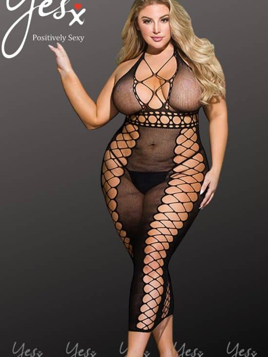 Sexy festive chemise with red transparent heart patterned fabric and fluffy faux fur white pom-pom bow. A great choice for a sensual festive night in. This chemise arrives with attached suspender straps, a Santa hat, thong and stockings. The bra is halter neck and adjustable. This item arrives packaged in a YesX satin bag.