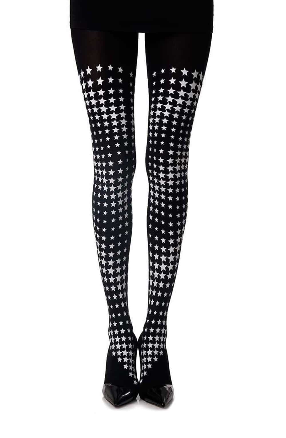 Diamonds in the sky print tights. Grey stars print on black designed tights. Black opaque tights – 120 denier. Grey print on both legs on the front& the back.